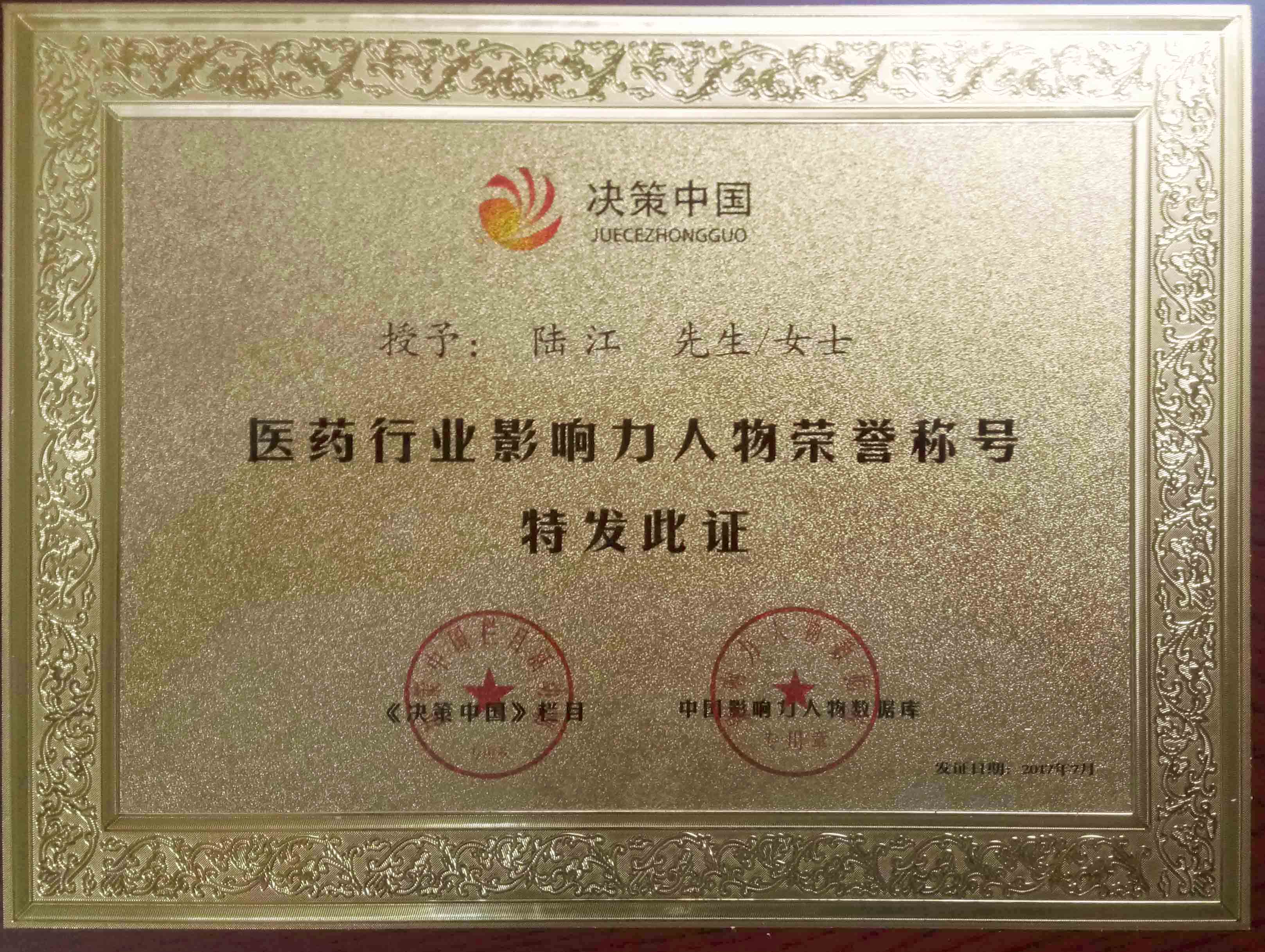 陸江榮獲引領(lǐng)行業(yè)發(fā)展杰出貢獻(xiàn)人物證書 --------卓康公司榮獲全國(guó)質(zhì)量、服務(wù)、信譽(yù)AAA級(jí)品牌證書